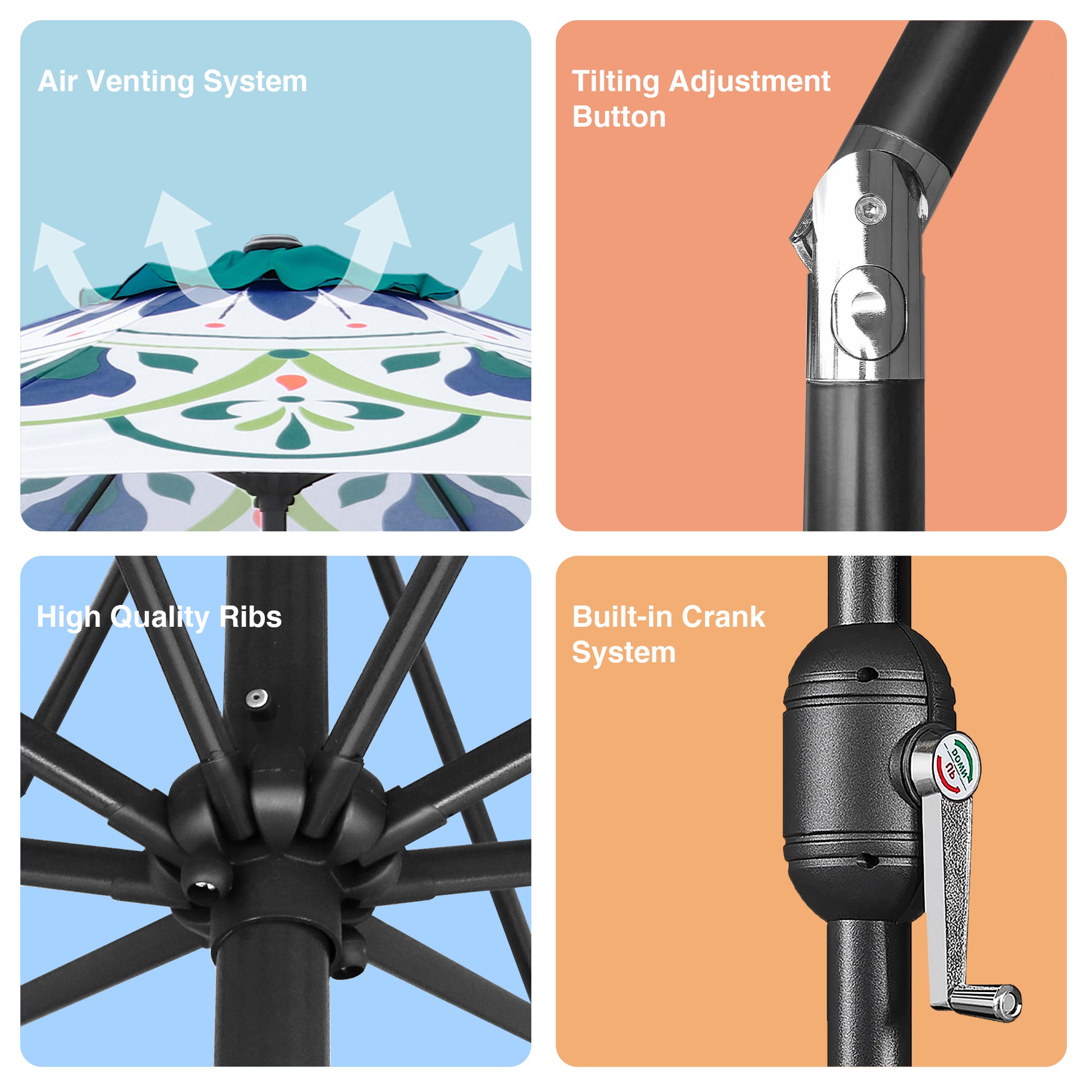 *Generous 9 ft canopy – provides wide, comfortable shade for dining sets or lounge areas
